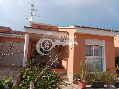 Chalet pareado a la venta, ubicado a 4 km del centro de Peñíscola y a las playas de arena. Esta dentro de una urbanización privada en zona muy tranquila con piscina comunitaria, la casa esta en planta baja, tiene Salón comedor, cocina, 2 dormitorios, baño, garaje cerrado, esta equipado con Aire acondicionado y cocina completa con electrodomésticos. Tiene dos grandes terrazas tanto delante como detrás de la casa. Muy iluminada y lista para entrar a vivir.